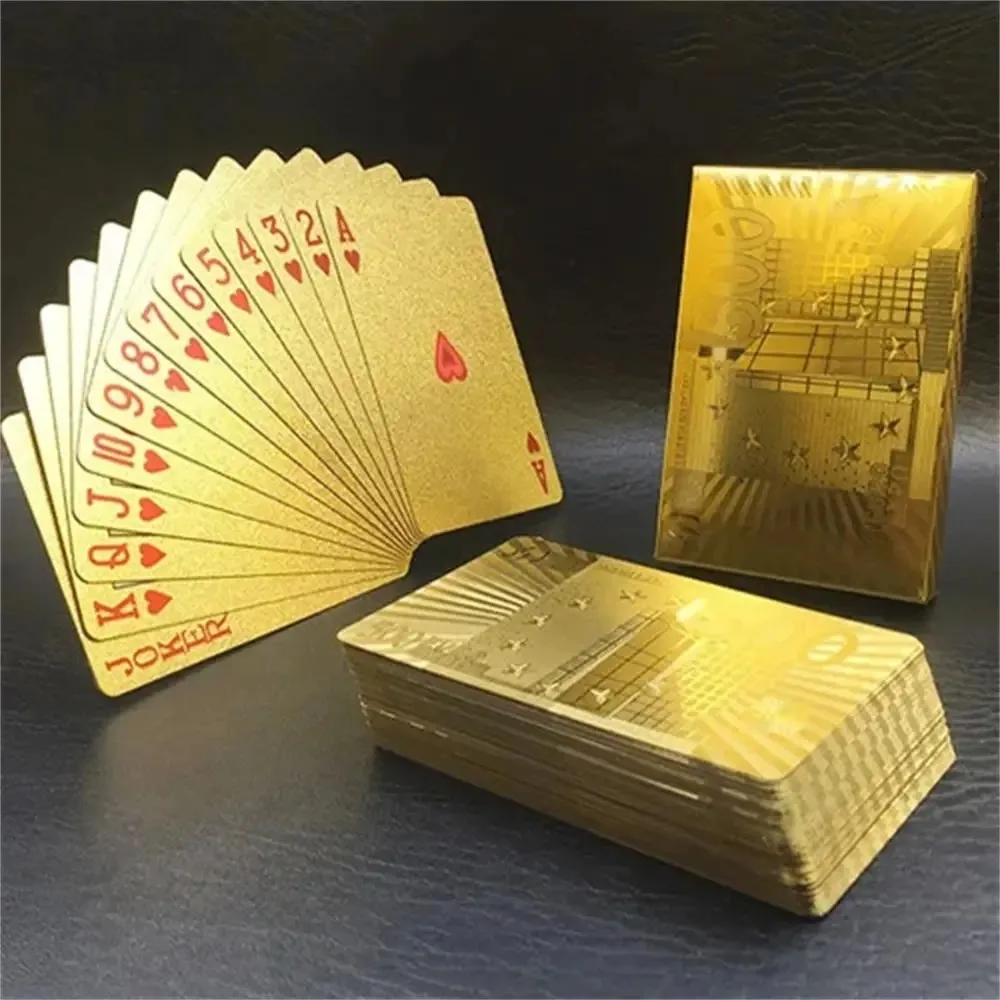 55pcs 황금 플레잉 엔터테인 카드 골드 포일 포커 세트 매직 카드 24K 골드 플라스틱 포일 포커 내구성 방수 카드