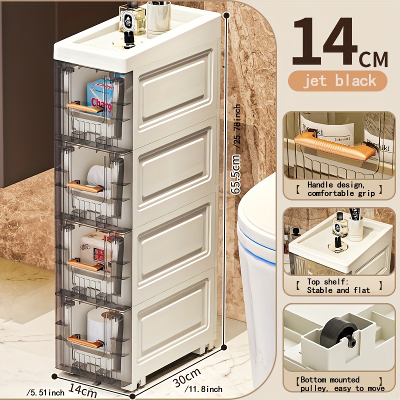 TEMU 다층 좁은 수납장 (높이 27"+) & 공간절약형 수직 디자인 - 내구성 플라스틱, 냉장고, 욕실 또는 좁은 공간용 쉬운 조립 - 컴팩트 선반 유닛, 목재 없음, <3.2 Cu Ft 용량, 수납 서랍 유닛