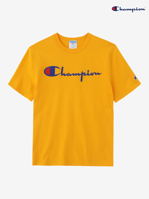 챔피온 헤리티지 쇼츠 다이렉트 플록 스크립트 반팔티 C골드 GT19-Y07954-BYC
