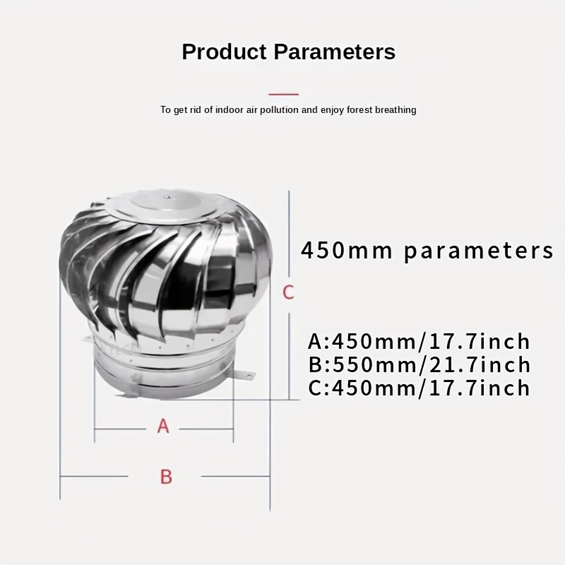 TEMU 250mm-450mm 비전동 스테인리스 스틸 지붕 통풍 회전 볼, 풍력 배기 냉각 후드, 공장 지붕에 적합한 저비용 통풍 장치.