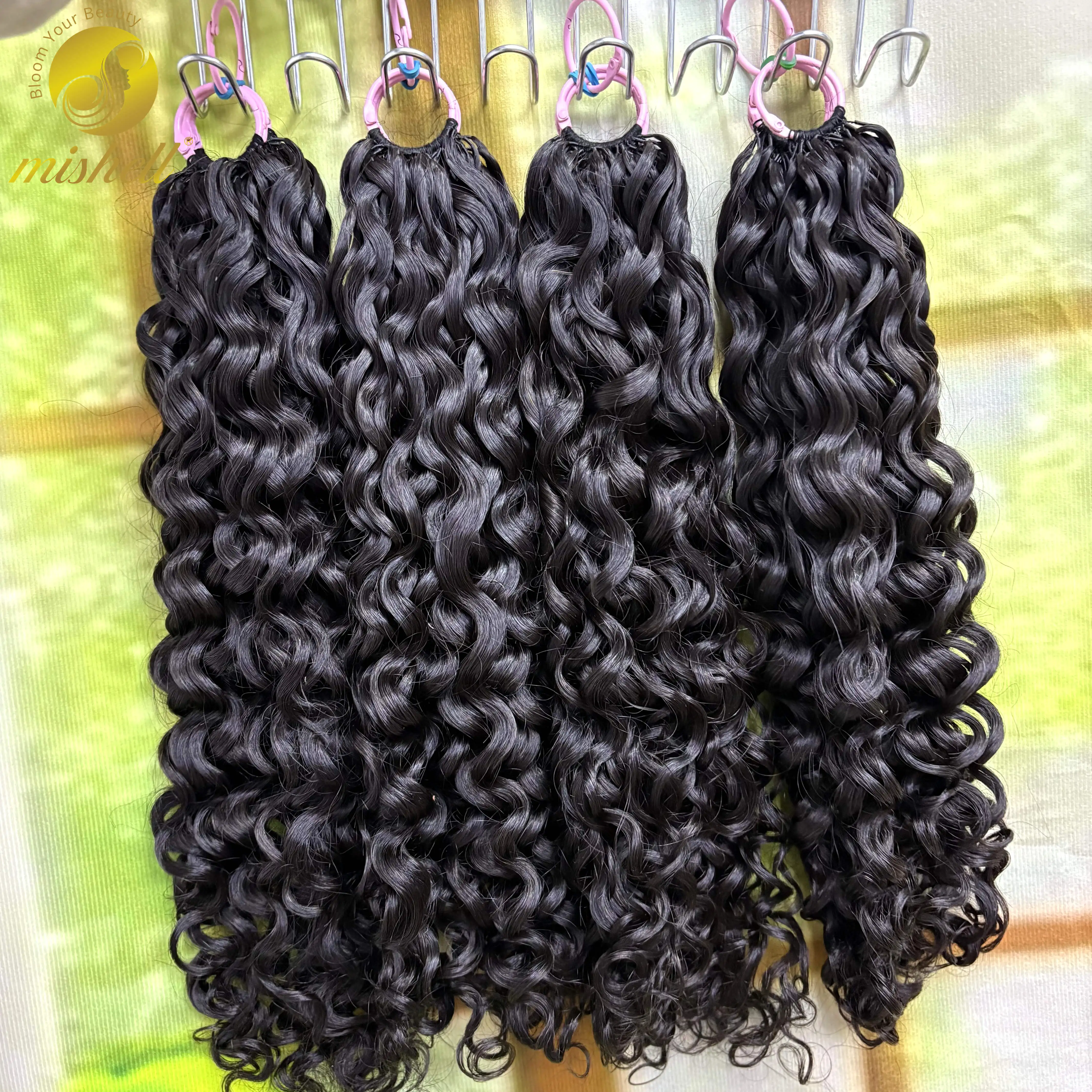 버마산 곱슬 깃털 크로셰 브레이딩용 미리 분리된 무매듭 크로셰 헤어 100% 인모 여성용 헤어 익스텐션