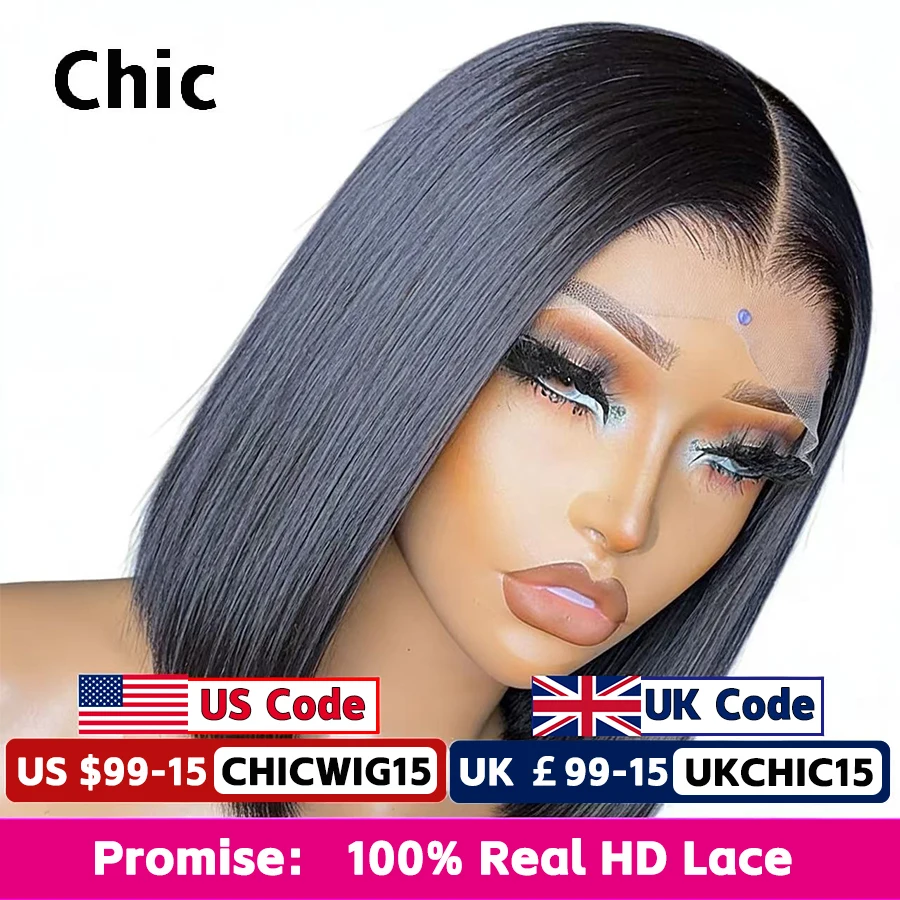 숏밥 가발 스트레이트 글루리스 가발 바로 착용 가능 인모 가발 프리컷 4x4 엘라스틱 드로스트링 업그레이드 무접착 레이스 에어 가발
