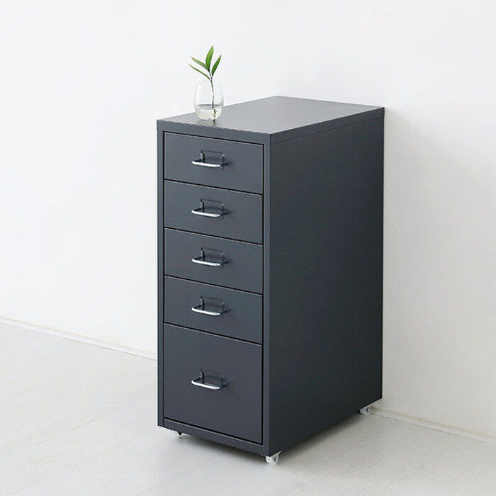 인테리어 철재 모듈 오단서랍장 가벼운 블랙 키큰