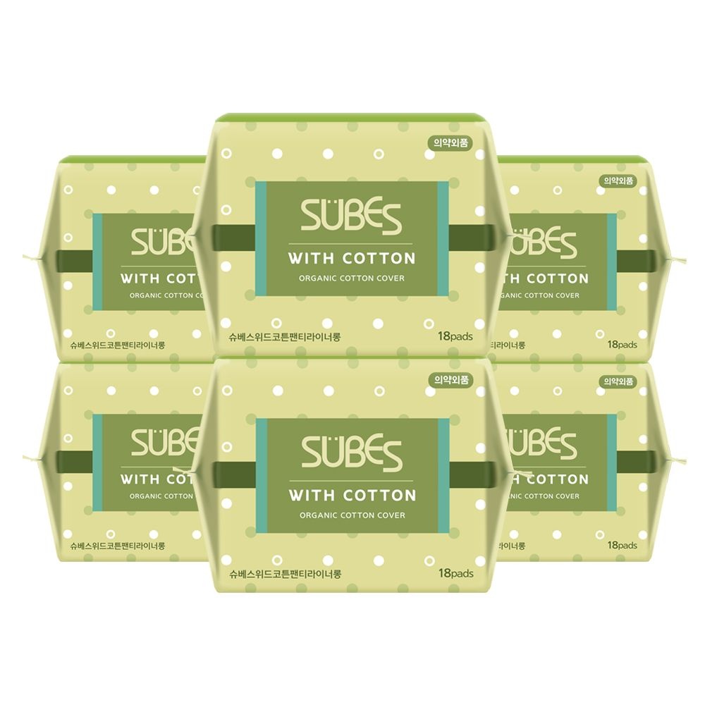 위드코튼 유기농 순면커버 생리대 팬티라이너롱 18P x6팩