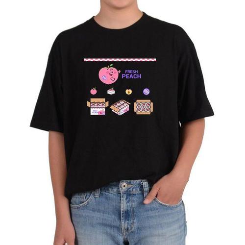 [에이치플러스몰]길단 반팔 USA핏 복숭아 과일과게 농산물시장 천도복숭아그림 다양한색상 전사이즈