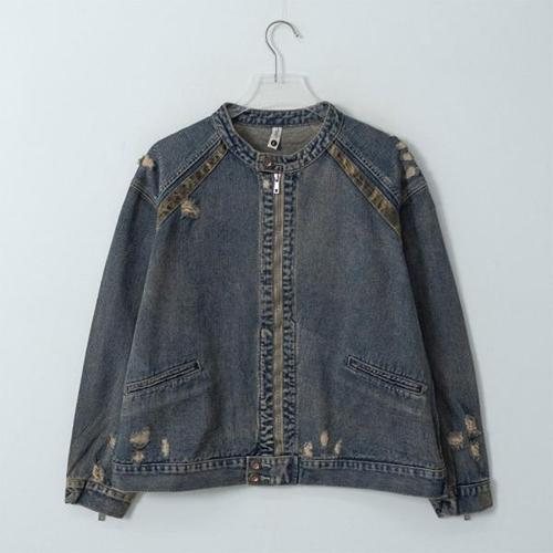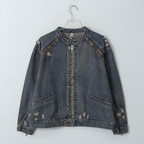 [옷자락]남자 빈티지 나그랑 데미지 차이나 버튼 크롭 청자켓