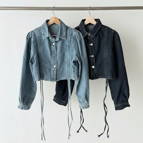 [옷자락] 여성 셔링 퍼프 칼라 크롭 청자켓 투웨이 봄용