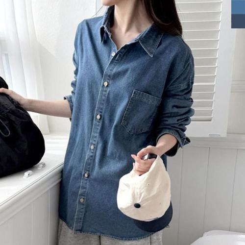 [하프클럽] 베이직 여성 데님셔츠 긴팔 데님남방 루즈핏 청남방