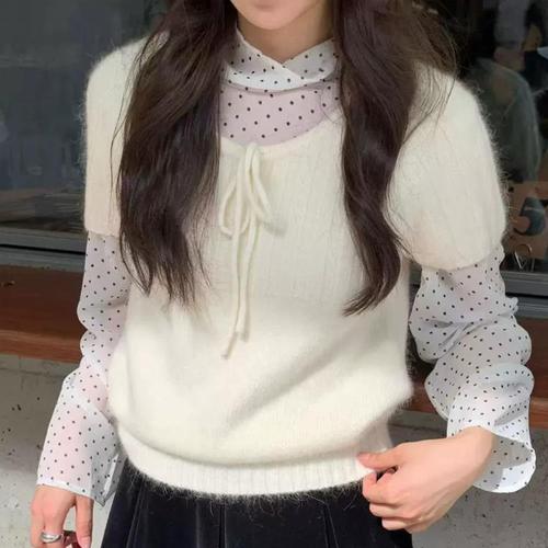 [옷자락]여성 러블리 땡땡이 블라우스 레이어드 울 니트
