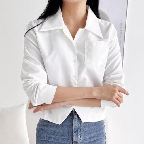 [엄지척]러블리 여성 크롭 셔츠 포켓 여자 블라우스_19660404_667501
