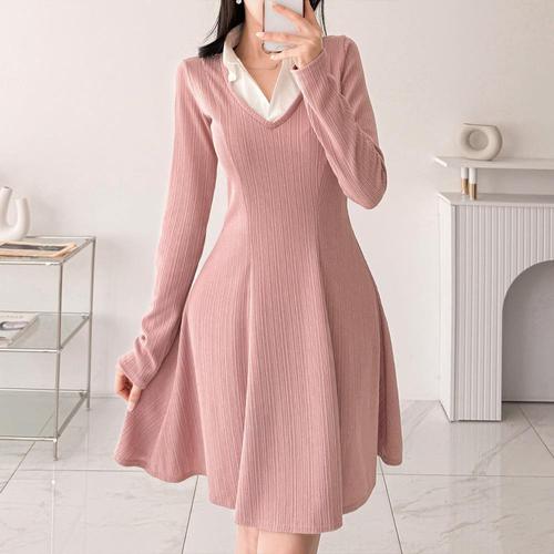 [옷자락]여자 러블리 셔츠 레이어드 플레어 미니 원피스
