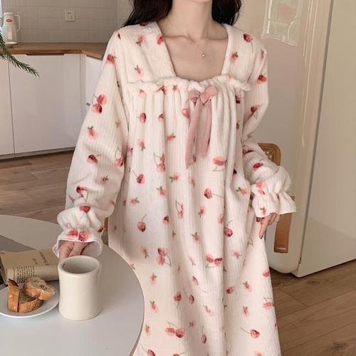 세이브 루즈핏 체리 리본 원피스 홈웨어 겨울 잠옷