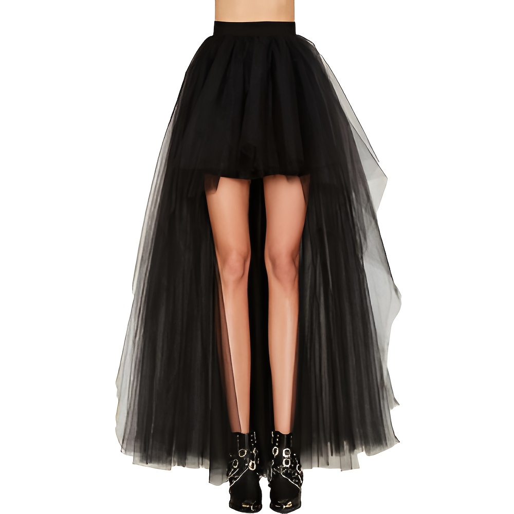 TEMU 유럽 스타일 인어 툴 튜튜 스커트 - 다양한 컬러 옵션 (화이트/그린/블루/핑크/레드/네이비/블랙) & 하이로우 헴, 레이어드 트레인 - 손세탁 전용 웨딩, 프롬, 파티 & 공연용 가운 액세서리
