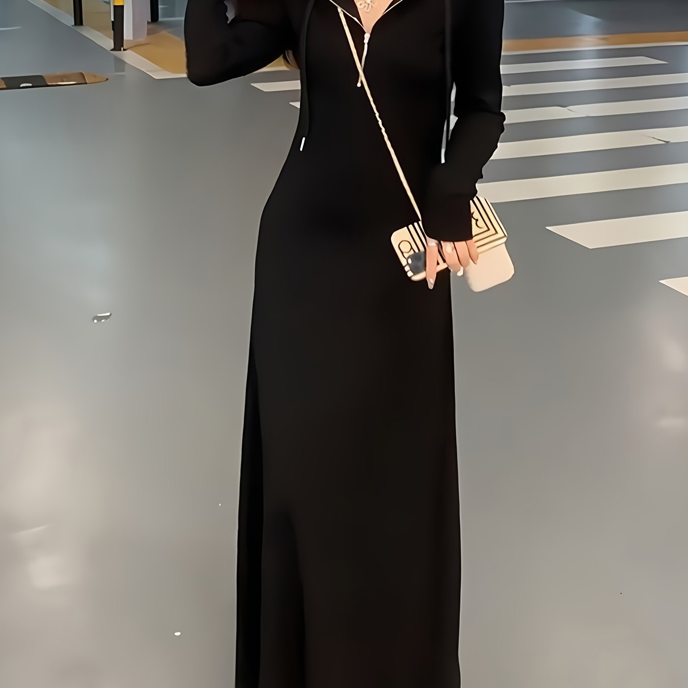 TEMU 여성용 A라인 후드 스웨트셔츠 드레스 - 슬림 웨이스트 & 내부 스커트, 롱 드레스, 풀 길이 플로우 A라인 실루엣, 세탁기 사용 가능, 겨울용 스웨터 드레스, 캐주얼 또는 포멀 이벤트용 (노-디자인)