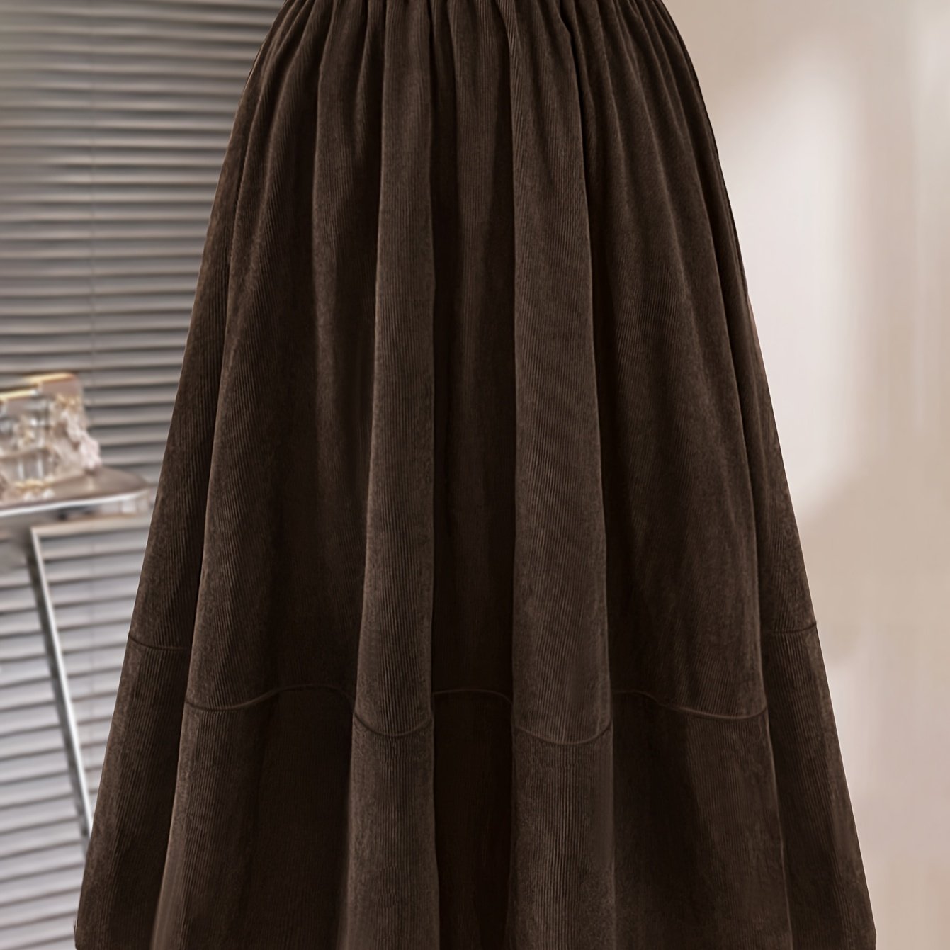 TEMU 플러스 사이즈, 여성용 우아한 롱 A라인 맥시 스커트 - 겨울용 따뜻한 코듀로이 느낌 소재 (논스트레치) 브라운 솔리드 컬러, 가을/겨울용 와이드 스윙 스커트, 캐주얼부터 포멀웨어, 오피스, 웨딩 & 파티 - 다용도 - 롱 스커트