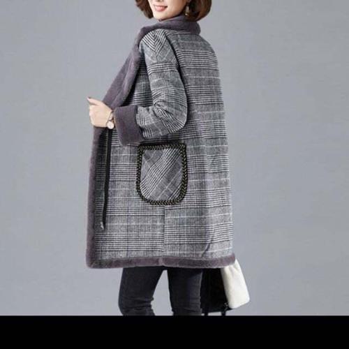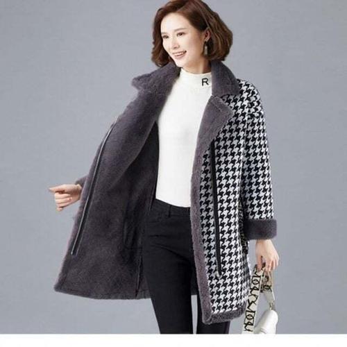 [셀럽하우스]안감 GPRU1654 퍼 윈터 체크 하운드 따뜻 하프 모직 코트 자켓