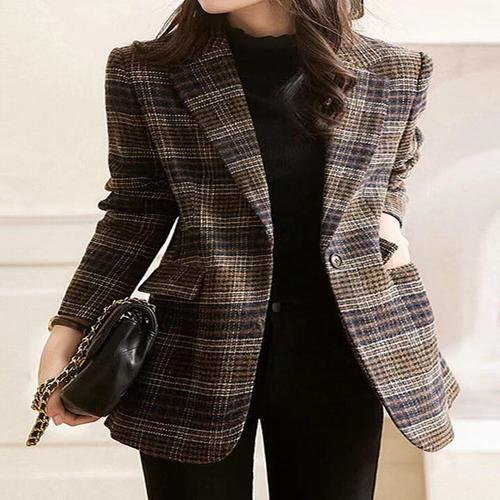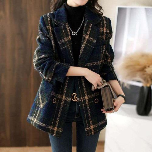 [셀러허브_여성트랜드패션]여성 루즈핏 체크 모직 패턴 가을 일상 숏자켓