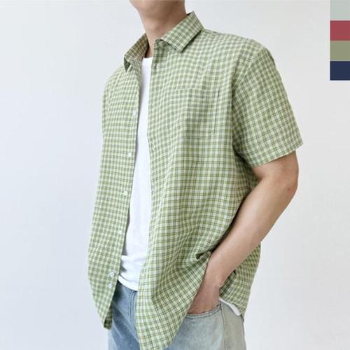 구김적은 린넨스타일 시원한 통풍 체크 반팔와이셔츠 W8DDD77