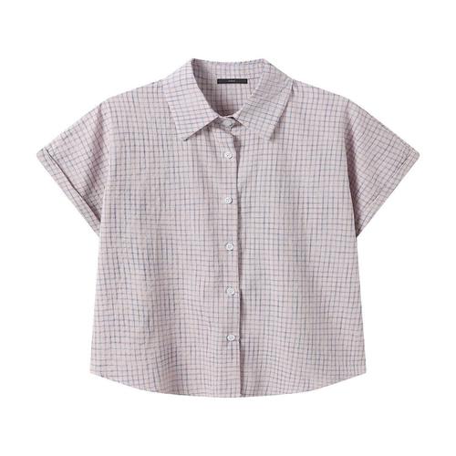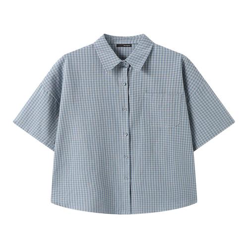 [보니스팍스]체크 패턴 밑단 타이 크롭 반팔 셔츠 (XQ1BA012L0)
