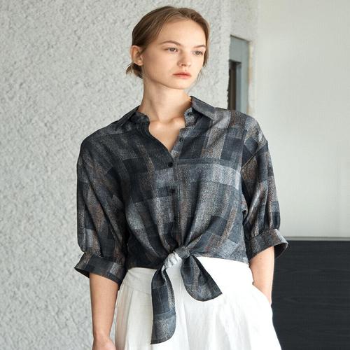 여자 롱 여름 루즈핏 셔츠 더블 사 체크 반팔 차이나 싱글 블레이저 스포M2