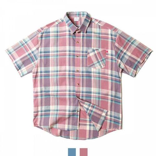 TBZ KING 마카롱 체크 루즈핏 반팔셔츠 남방