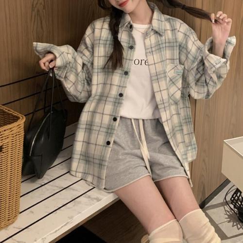 탐리프 여성 봄가을 루즈핏 체크 남방 체크셔츠