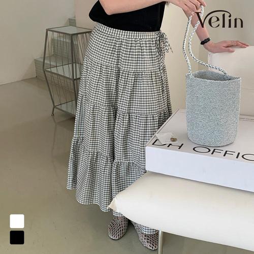 벨린 칩스 체크 롱스커트 프릴 스커트