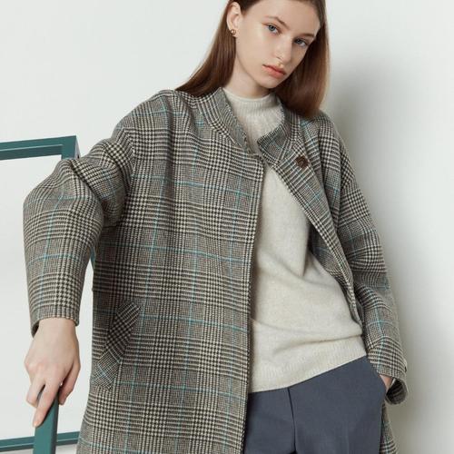 갤러리아_프리미엄 울코튼 블렌드 하이라운드 체크코트