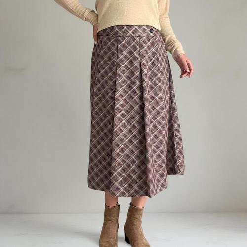 [에이비에프지]벨티드 체크패턴 미디 주름 스커트 APZ5QS04G