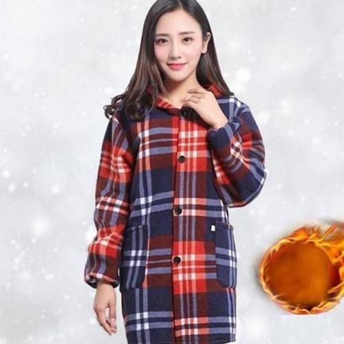 [라일리여성의류] Rly 체크 여성 후드 코트 벨벳 여성 플리스 코트 간