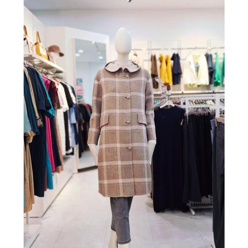 [ab.f.z][ab.f.z] 후드넥 체크 롱 코트 MAZ4HC03 (P003720657)