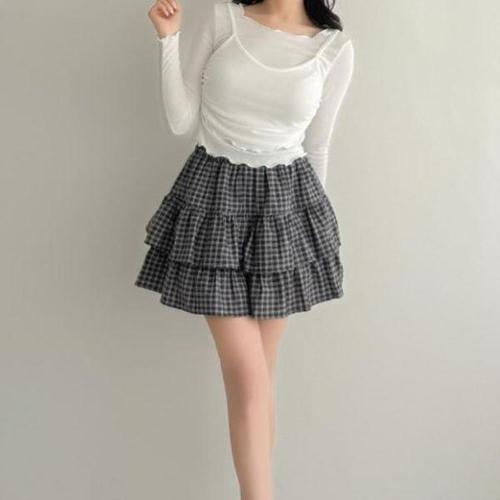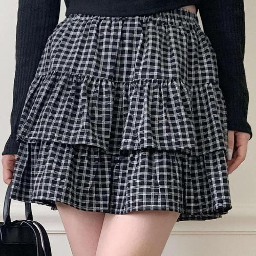 [옷자락]여성 키치무드 체크 쉬폰 레이어드 미니 스커트