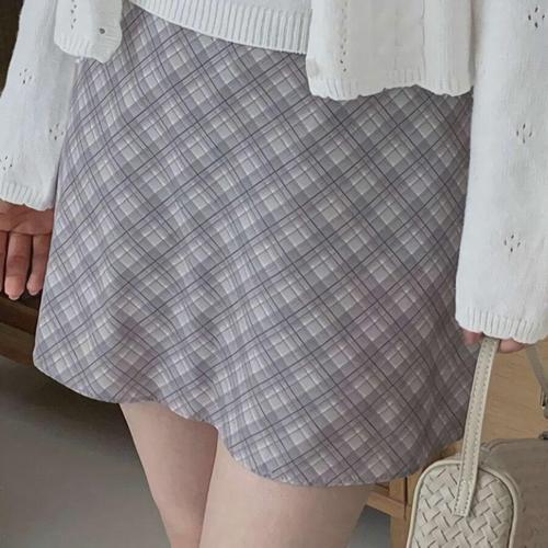 [디자이너몰]여성 페미닌 A라인 뒷밴딩 체크 미니스커트