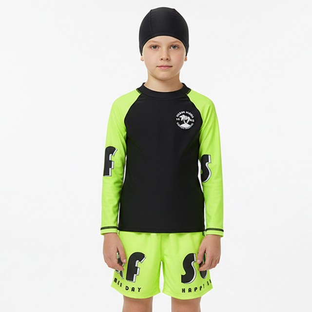 어린이 초등 중등 주니어 남아 수영복 긴팔 상의 반바지 레깅스 3종 세트 81 블랙 래쉬가드