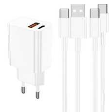 루미아코어 20W 2포트 멀티 PPS PD3.0 초고속 충전기 + C타입-C타입 케이블 2m *2 세트, 화이트, 1개