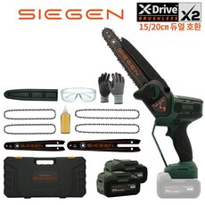 지겐 SIEGEN 21V 고출력 15/20cm 겸용 무선 BLDC 충전식 전기톱 체인톱, 2개