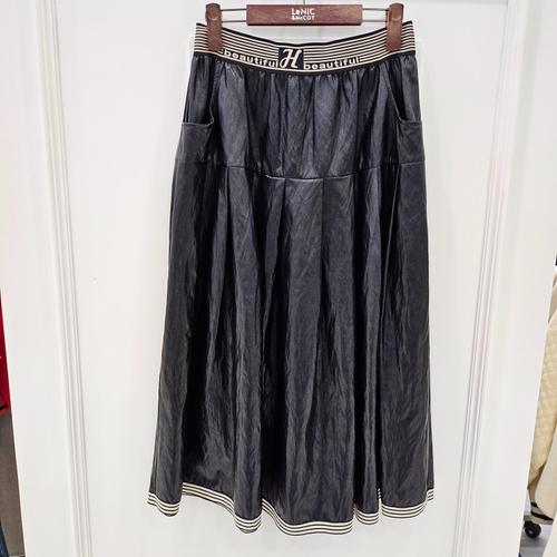 [르니앤맥코이]르니앤맥코이 허리밴딩 핀턱주름 페이크 가죽 스커트 MM11SK002_GN