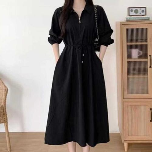 [오너클랜]인기상품 캐주얼 스타일 앞지퍼 오픈타입 카라 롱 원피스 [WE4602A_250918]