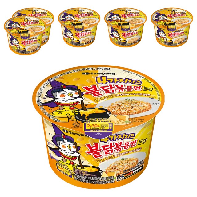 불닭볶음면 4가지 치즈 큰컵 110g, 6개