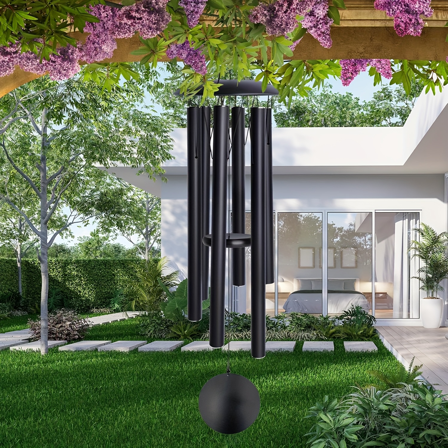 TEMU 야외용 33인치 어두운 색상 기념 알루미늄 풍경, 수동 튜닝 여섯 음으로 조율되는 정원용 풍경, 사랑하는 사람을 잃은 이들을 위한 위로 선물, 어머니를 위한 야외 추모품, 블랙 모던 엘레강스 디자인, 차임벨