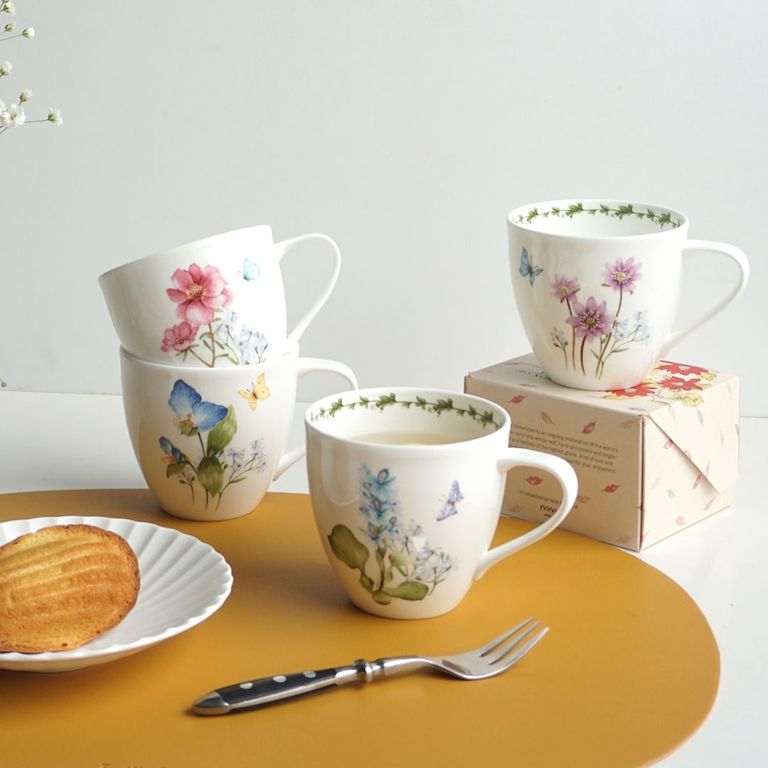 히키윈 3D 플라워 세라믹 커피 머그컵 11.8온스 빈티지 플로럴 카푸치노 개인 맞춤 여성 신부 샤워 선물