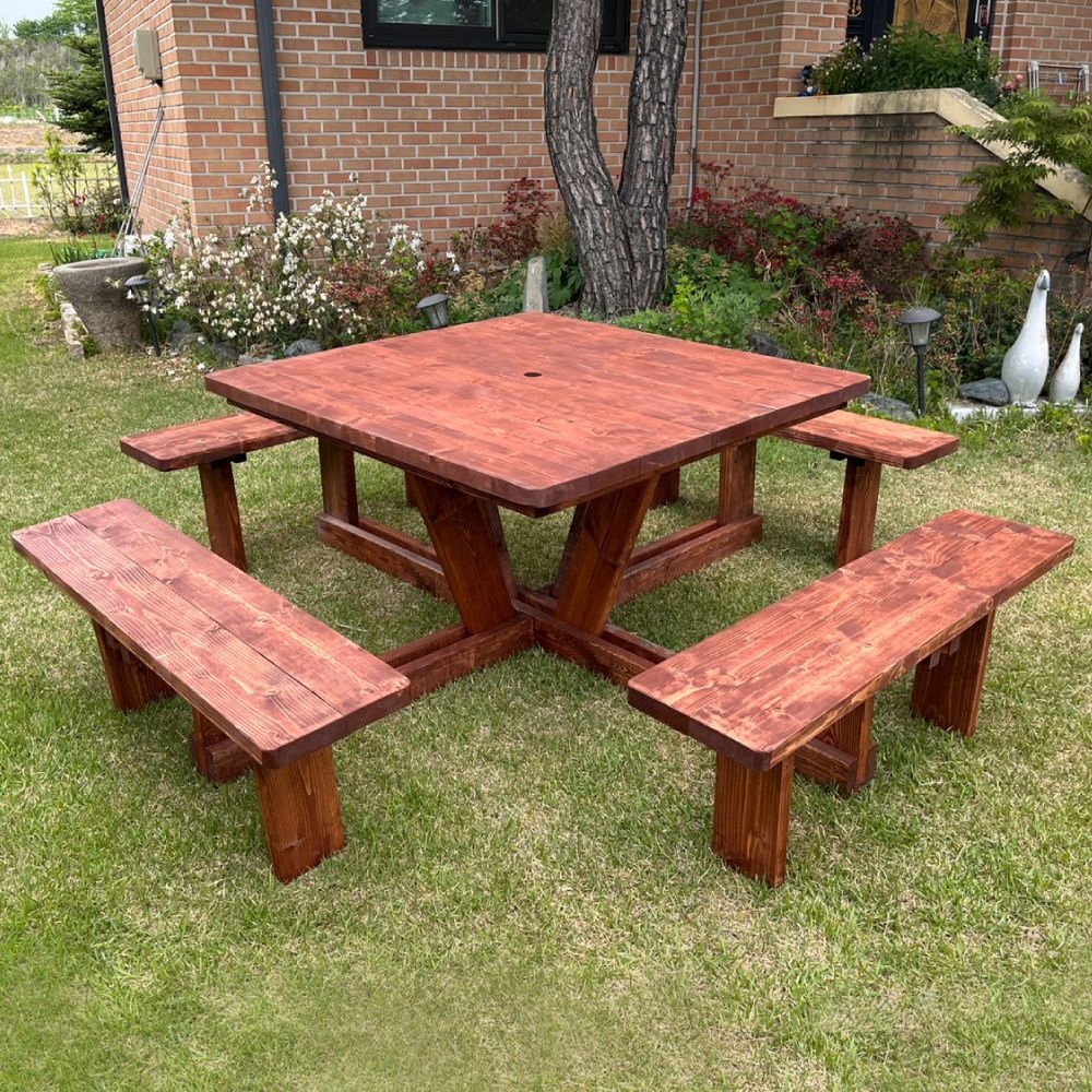 사각 야외 테이블 원목 야외용테이블 세트 파라솔 포함 카페 정원 일체형 분리형 사각테이블