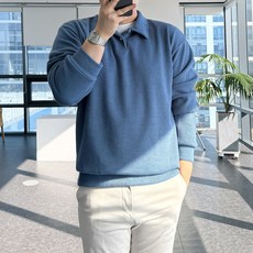 남성 깔끔한 출근 니트 골지 카라 긴팔 티셔츠 댄디룩
