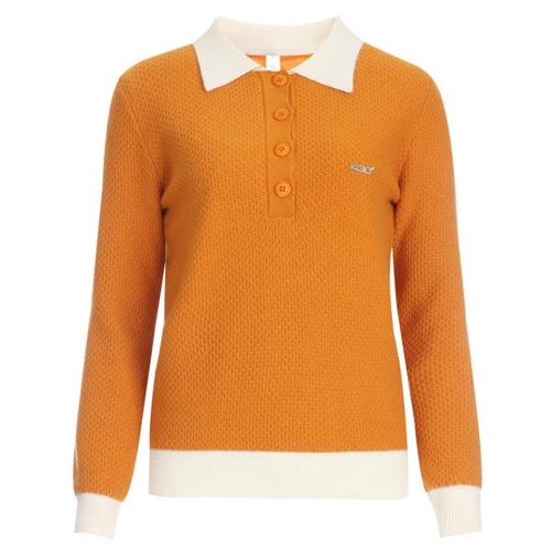 [샵앤]여성 카라 단추 반오픈 슬림 간절기 겨울 긴팔 니트 티 BOM-WKN-1648-오렌지