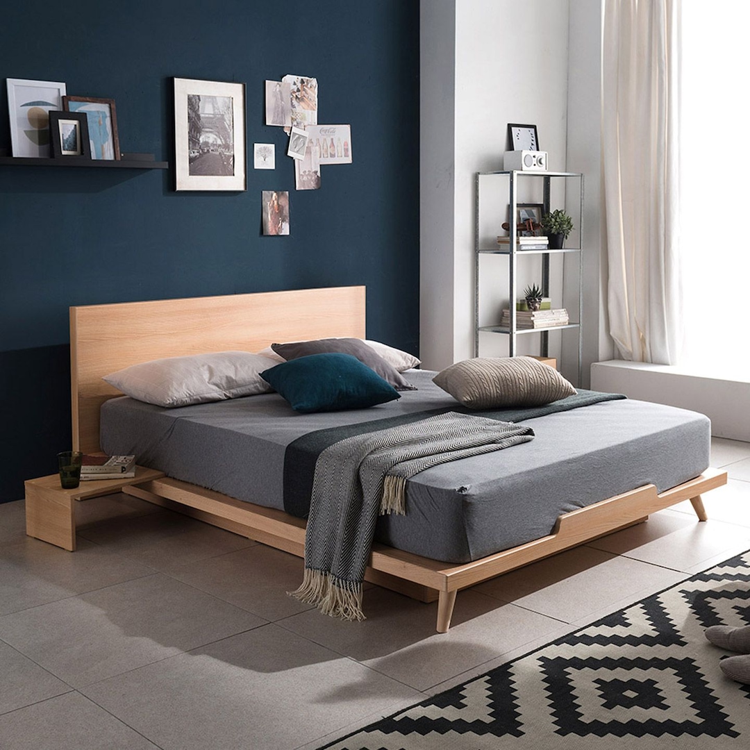 편백(히노끼) 평상형 분리형 선반형헤드 퀸침대 P-BE-Q-010