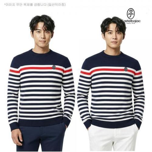 [까스텔바작]까스텔바작 골프 남성 간절기 스웨터 스트라이프 라운드 니트 BGESSW-002 CA3840845