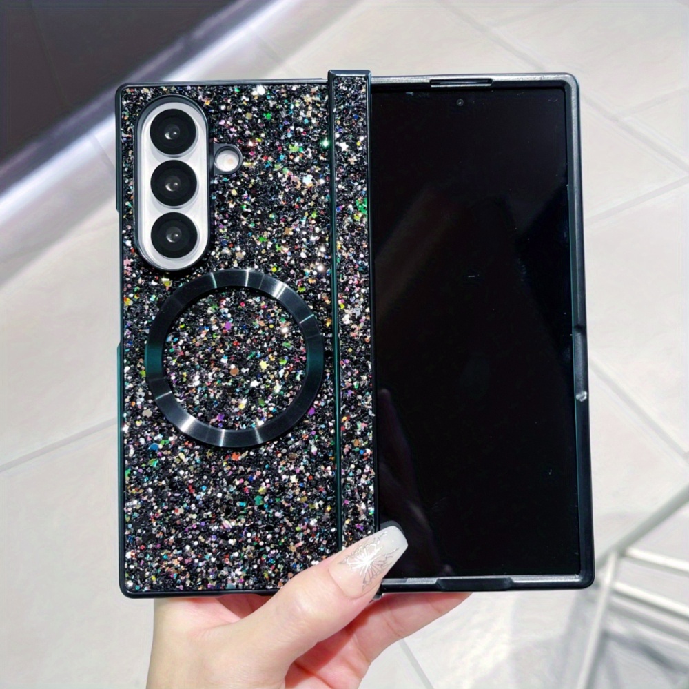 TEMU 휴대폰 케이스 - 삼성 Zfold 3/4/5/6에 적합한 3단 중축 스팽글 마그네틱 케이스, 완벽한 보호 기능 제공