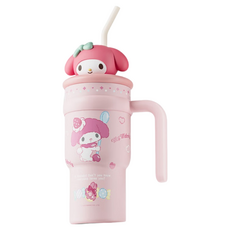 산리오 캐릭터 피규어 뚜껑 분리형 빨대 보온 텀블러, 핑크 마이멜로디, 1개, 700ml