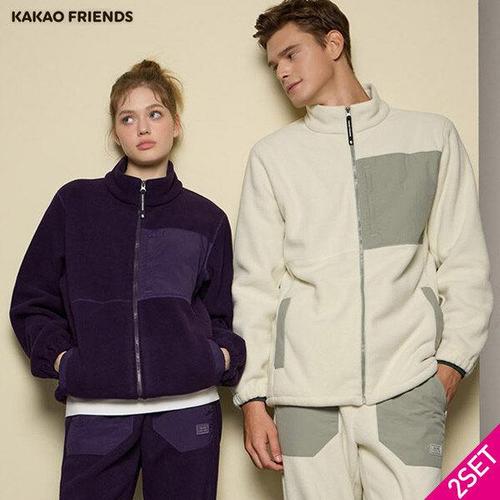 2SET [카카오프렌즈 KAKAO FRIENDS)] 더블플리스 남녀공용 셋업 2종세트(집업점퍼+팬츠)