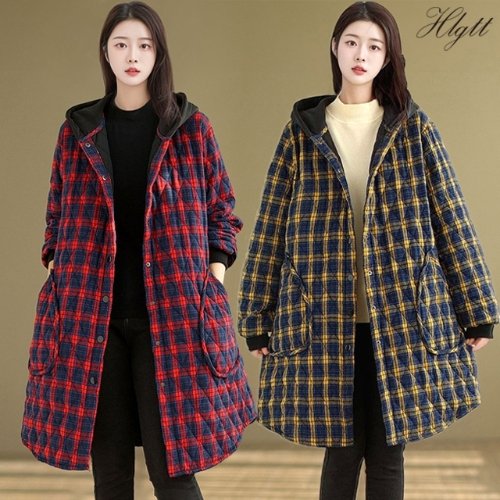 TEMU 양면 플리스 안감 후드 롱 재킷, 세탁기 사용 가능, 단색